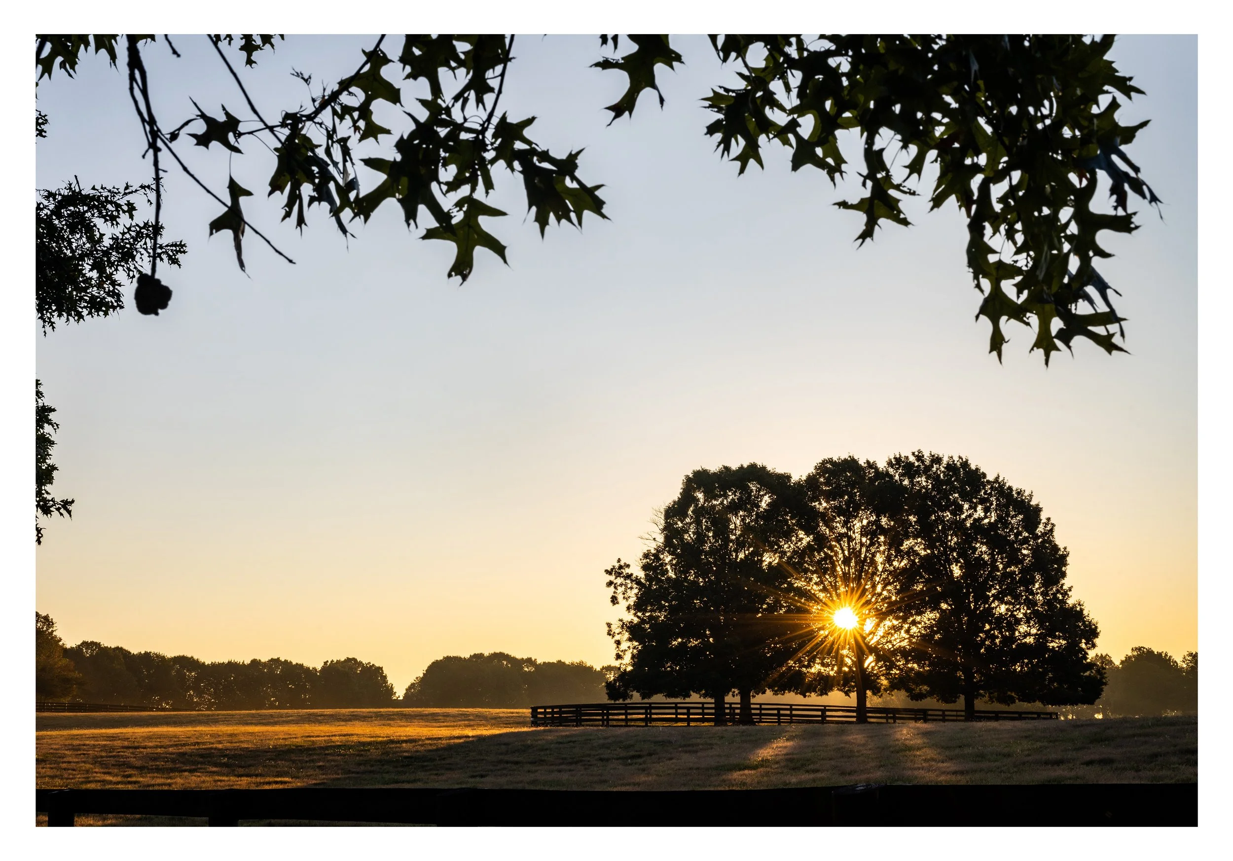 18x12” House Country Drive Photo Taken at 7:04AM. Notice the rays of sunlight peaking through the bundle of trees. Photo is printed on 13x19’” Canon Pro Luster Paper with a 1/2” white border.